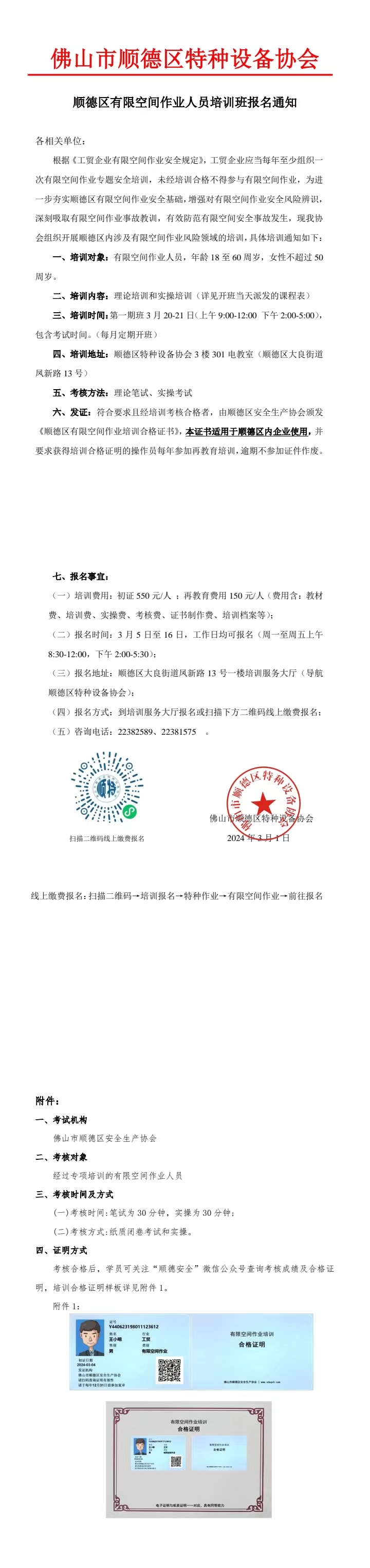转发(顺德区有限空间作业人员培训班报名通知)