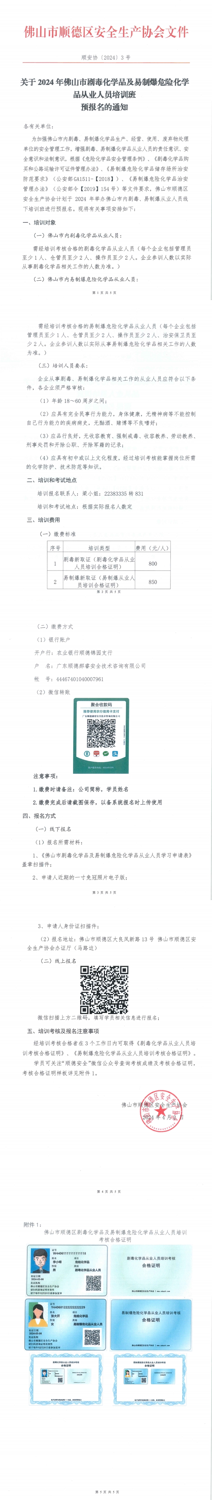 关于2024年佛山市剧毒化学品及易制爆危险化学品从业人员培训班预报名的通知