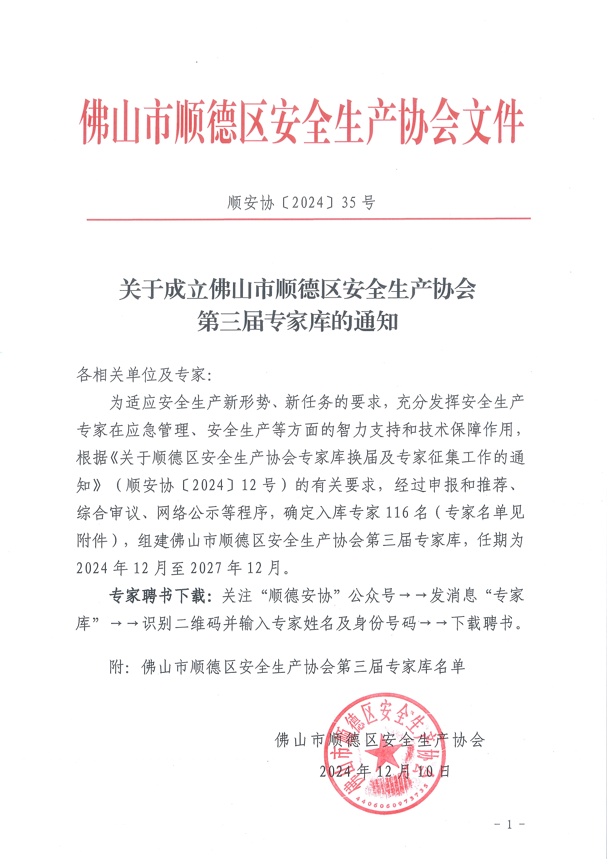 关于成立佛山市顺德区安全生产协会第三届专家库的通知