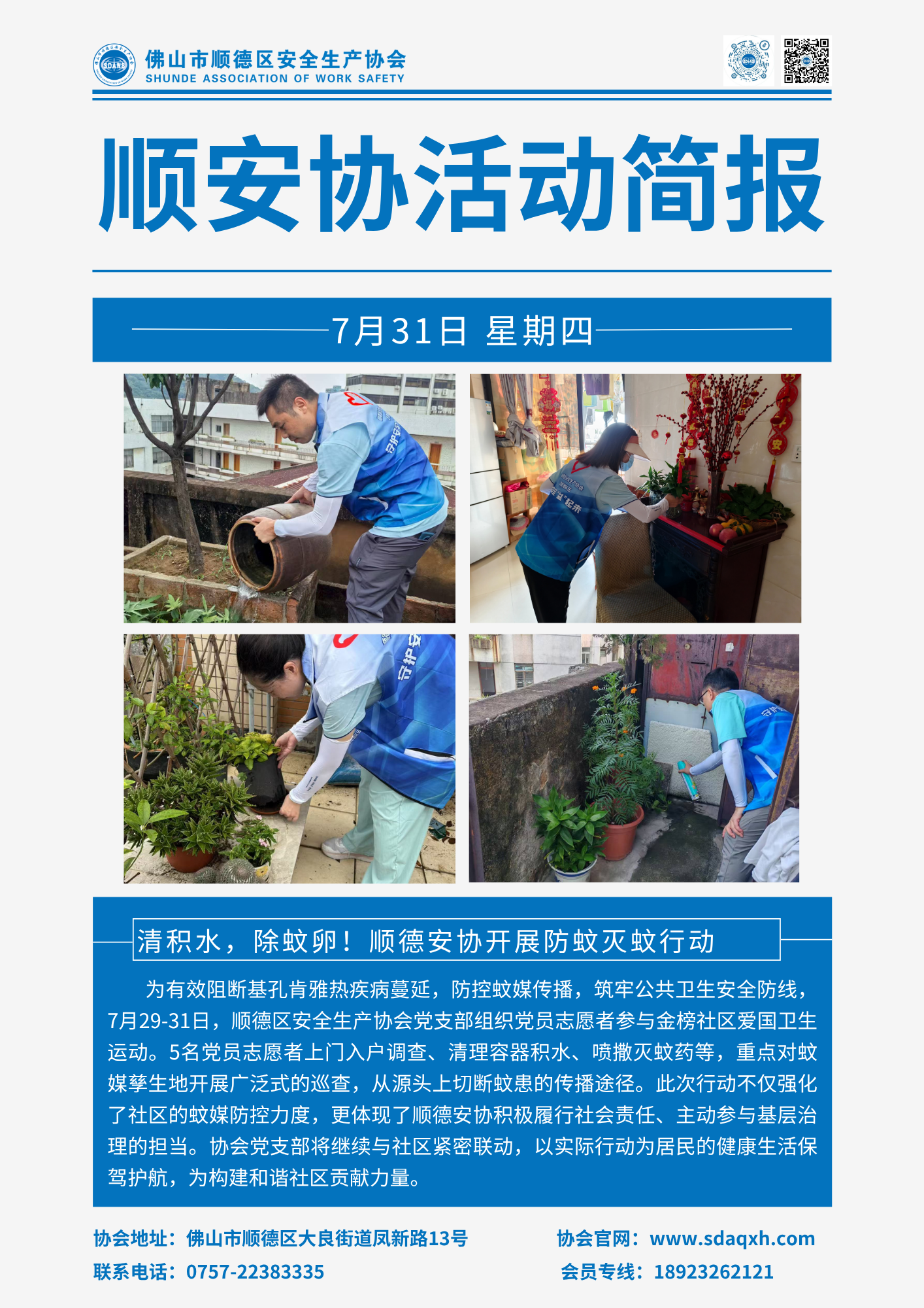 清积水,除蚊卵!顺德安协开展防蚊灭蚊行动