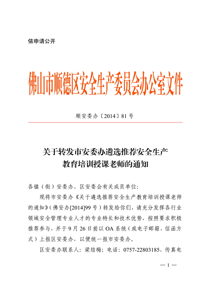 《关于转发市安委办遴选推荐安全生产教育培训授课老师的通知》