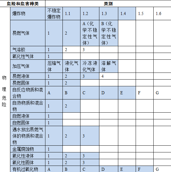 根据化学品分类和标签系列国家标准,从化学品28类95个危险类别中,选取了其中危险性较大的81个类别作为危险化学品的确定原则(见表1)。