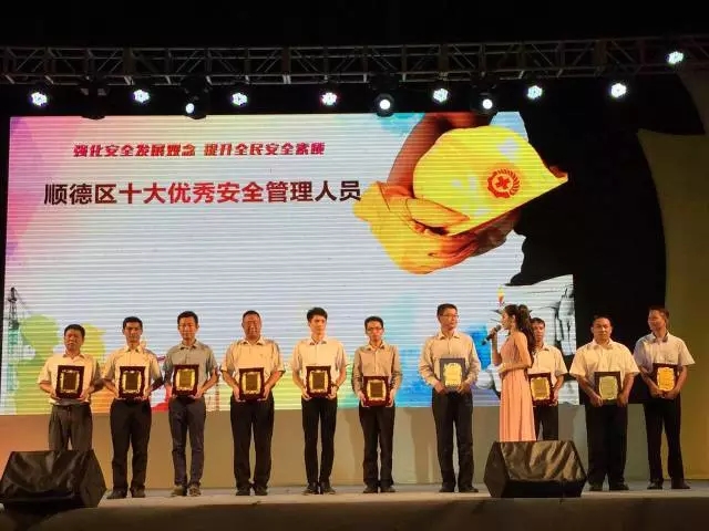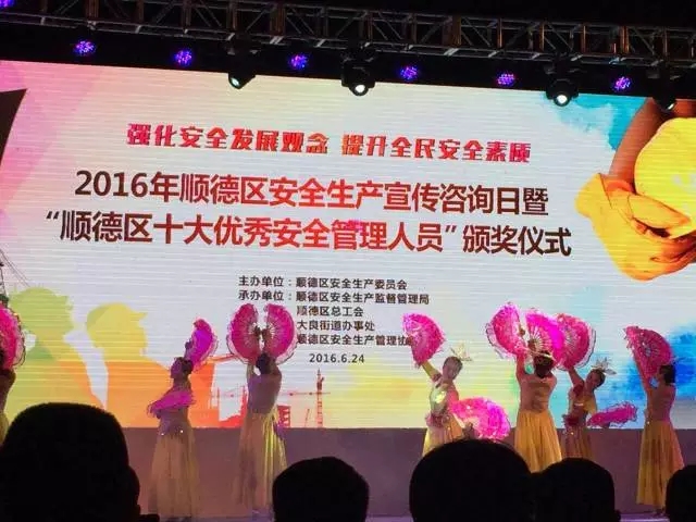 颁奖晚会现场,第七个节目是对我会主办的2016年顺德区“十大优秀安全管理人员”评选活动的获奖嘉宾进行现场颁奖及表彰。评选活动通过群众微信投票、专家现场评选、选手互投等环节评选出我区“十大优秀安全管理人员”,每一位“十大优秀安全管理人员”都是顺德区安全生产工作中的杰出代表,都在各自的岗位默默地为顺德的安全生产做贡献。