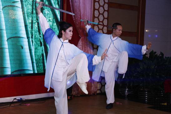 晚会的节目表演和抽奖环节将晚会推向高潮。悠扬歌曲、太极表演、魔术表演、礼品抽奖等轮番上演,令人目不暇接,台上台下掌声不断,来宾热情高涨,欢声笑语,举杯畅谈,其乐融融。