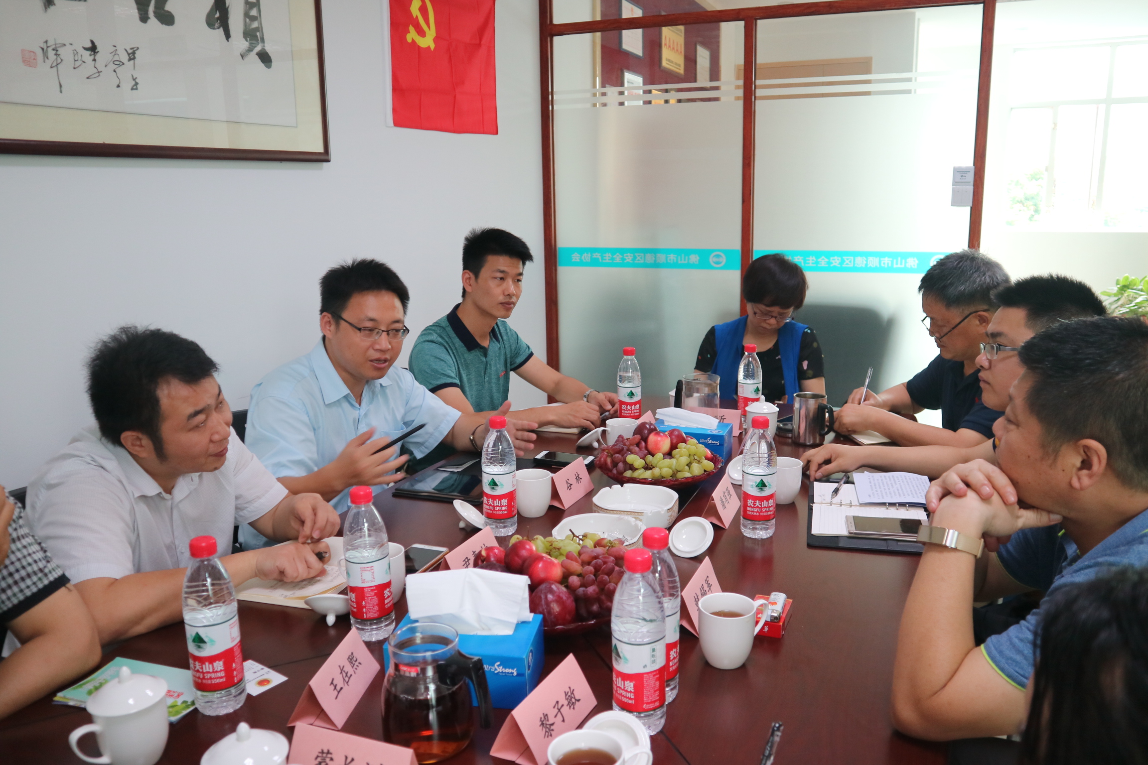 5月23日上午,广州开发区安监局执法分局局长谷林、开发区安全生产和职业健康协会秘书长尹春林、副秘书长杨智杰、坐班专家王在熙一行4人到协会参观调研,顺德区安监局办公室主任韩锡军、协会秘书长潘有强及各部门主任蒙长洲、邓昕、杨丕槐等出席了本次活动。