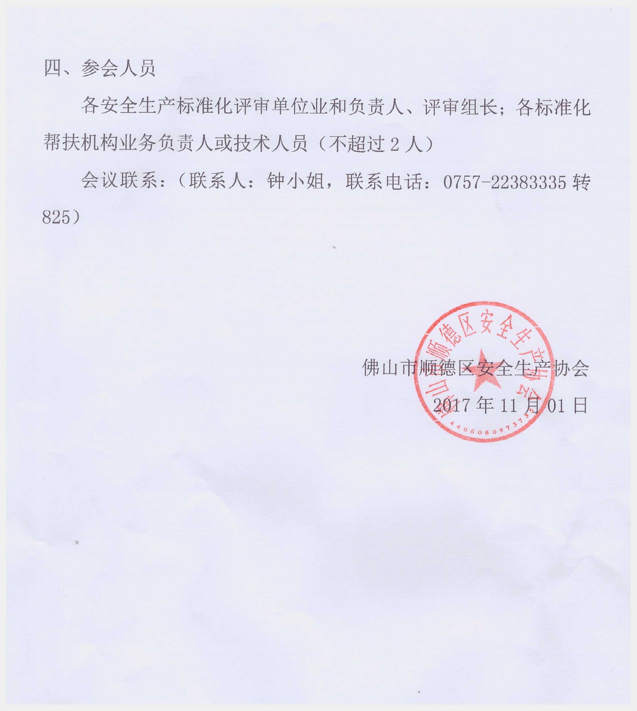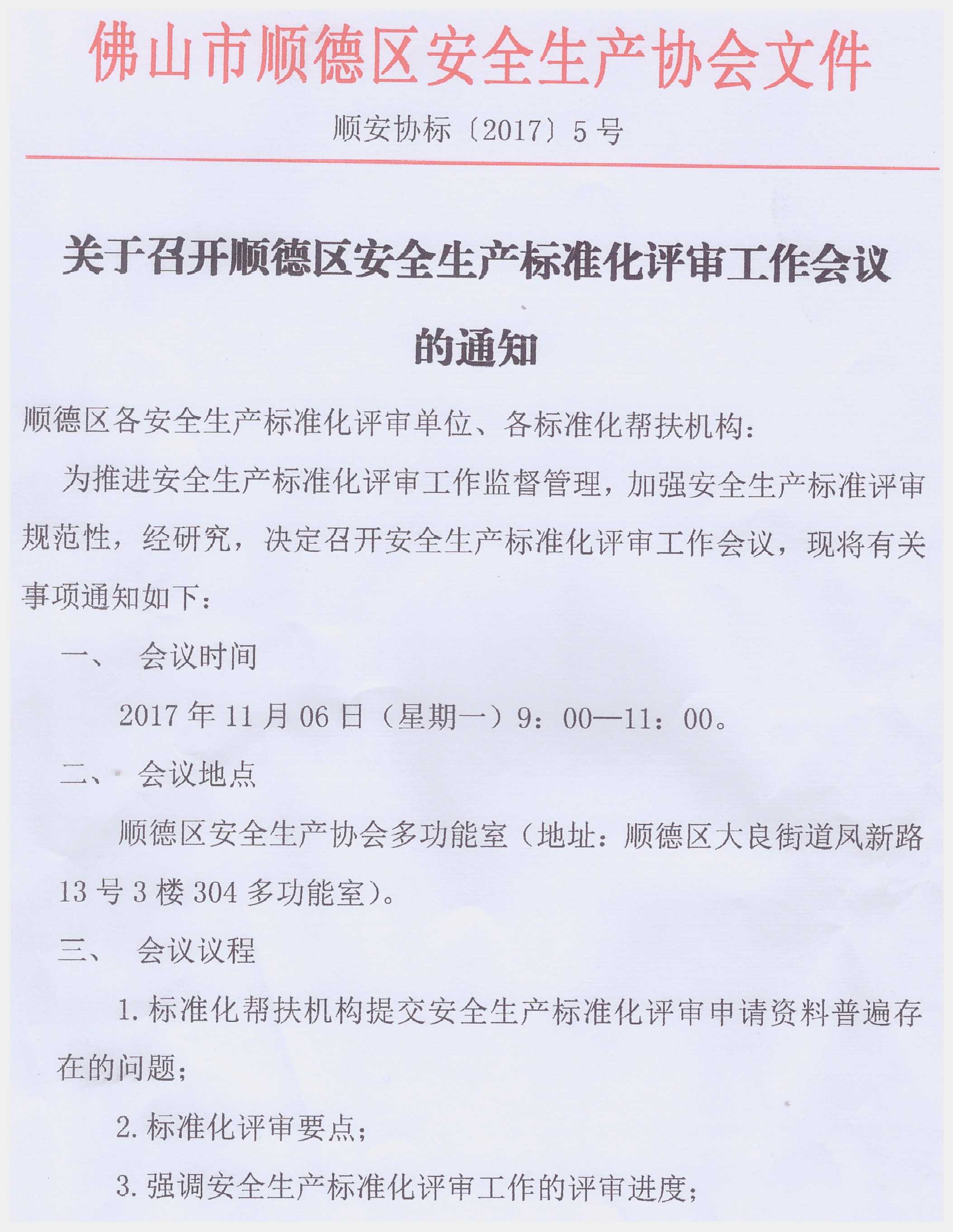 关于召开顺德区安全生产标准化评审工作会议的通知