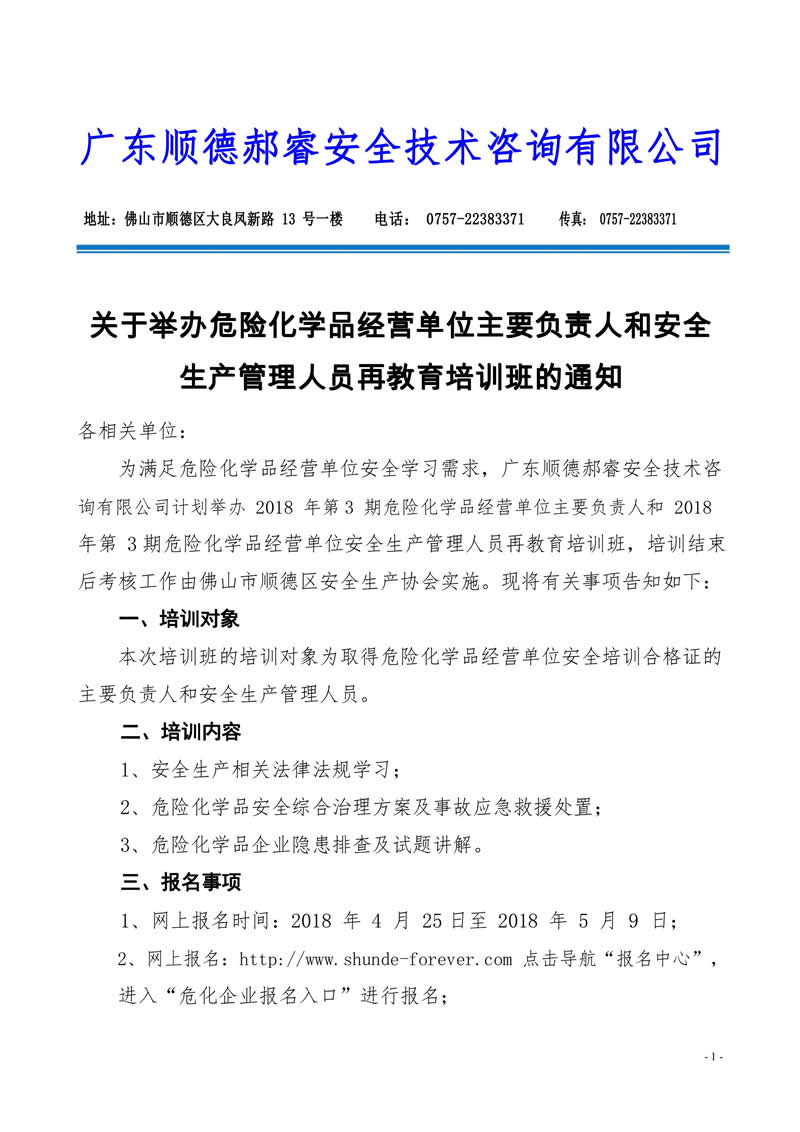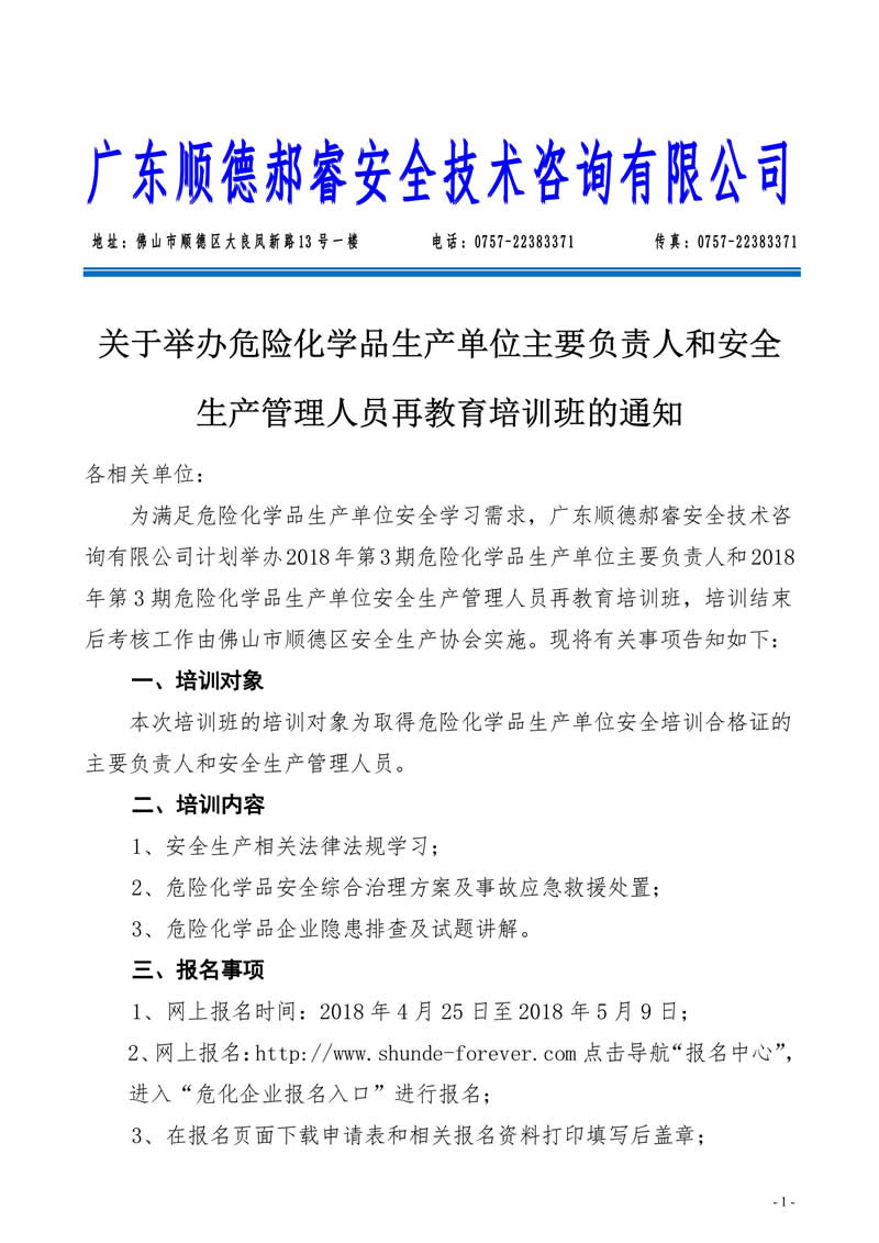 转发“关于举办危险化学品生产经营单位主要负责人和安全生产管理人员再教育培训班的通知”