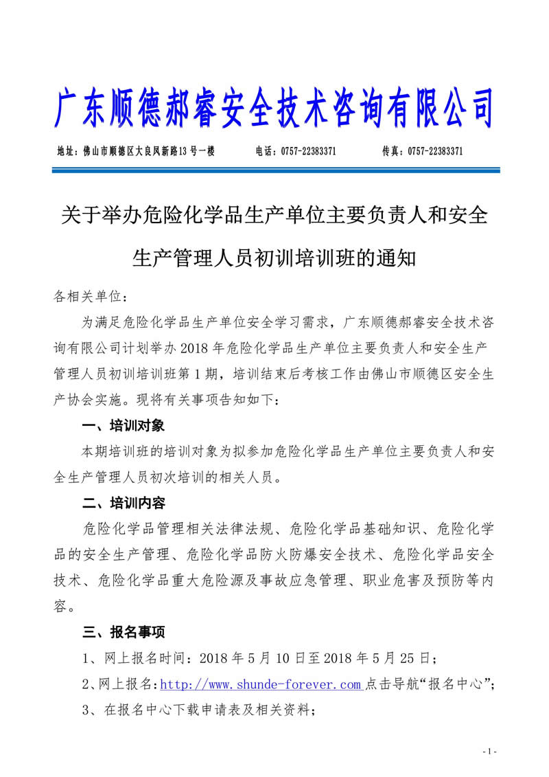 转发“关于举办危险化学品生产经营单位主要负责人和安全生产管理人员初训培训班的通知”