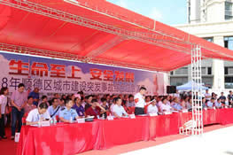6月28日上午,协会承办的2018年顺德区城市建设突发事故综合应急演练在伦教保利中央公园举行,区国土城建和水利局、区轨道办、区安全生产监督管理局、区公安局、区公安交通警察大队、区消防大队、区环境运输和城市管理局、区卫生和计划生育局、区市场监督管理局等19个部门参与演练。顺德区副区长冼阳福,区安委办主任、安监局局长李发彬,区安监局副局长林贵有等上百名领导和嘉宾观摩了此次演练。