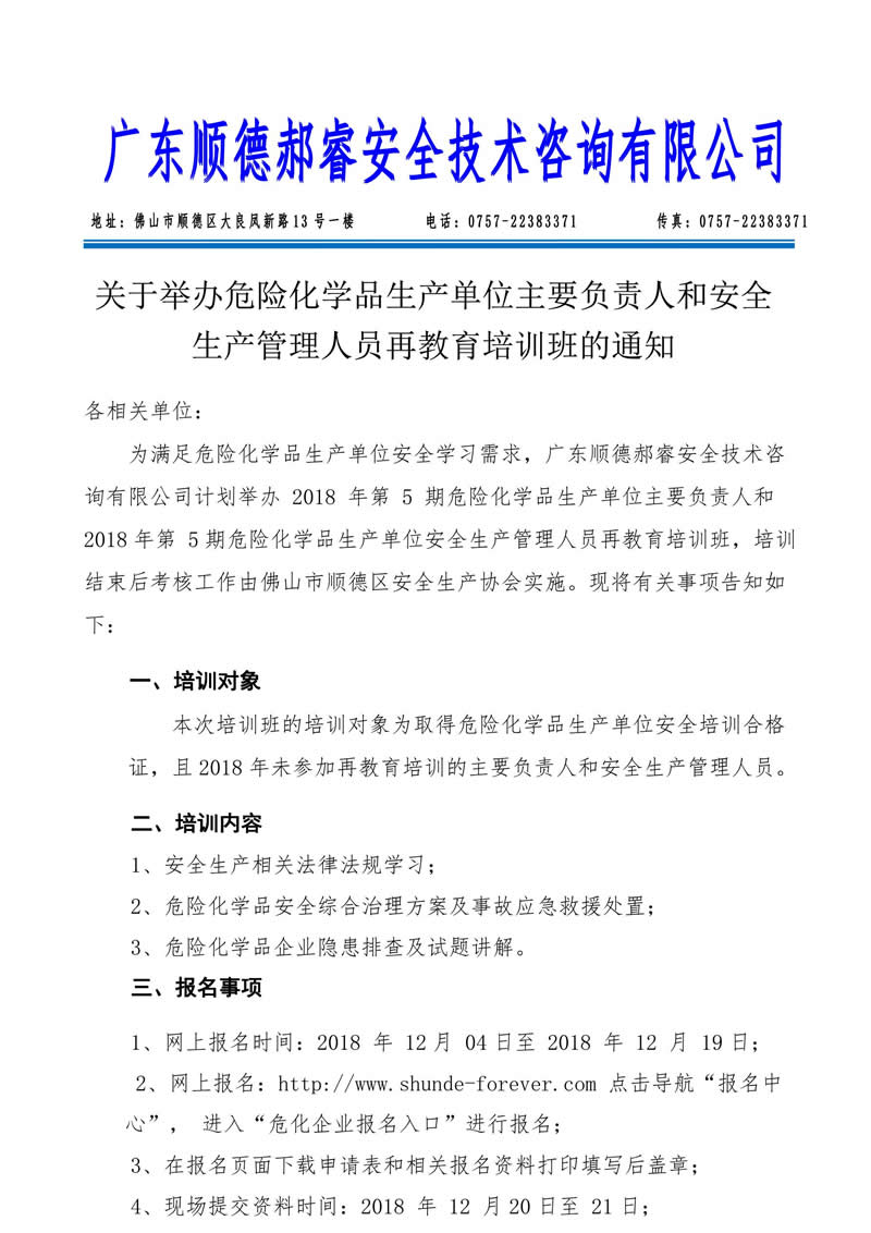 关于转发举办危险化学品生产、经营单位主要负责人和安全生产管理人员再教育培训班通知
