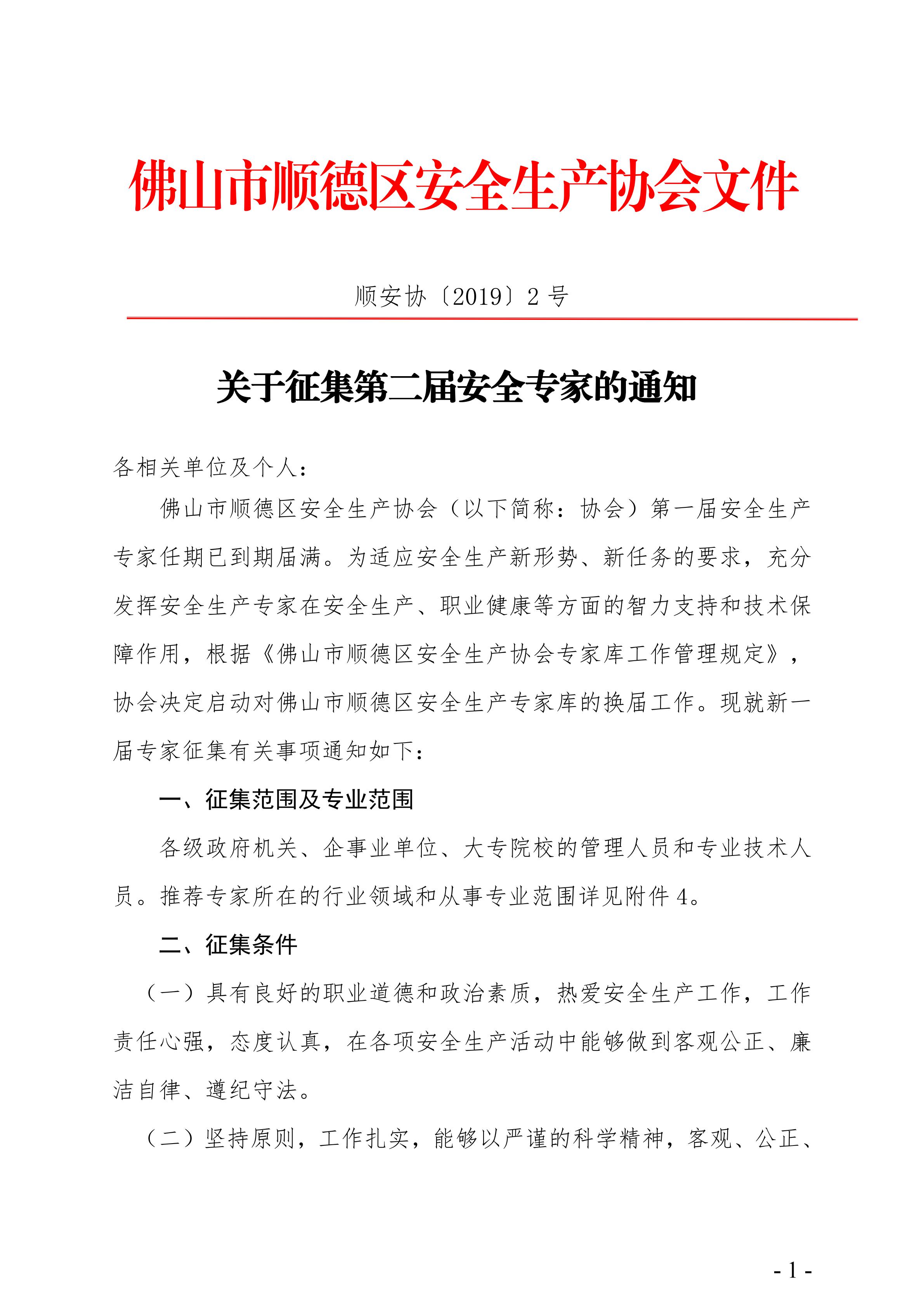 顺安协[2019]2号关于征集第二届安全专家的通知