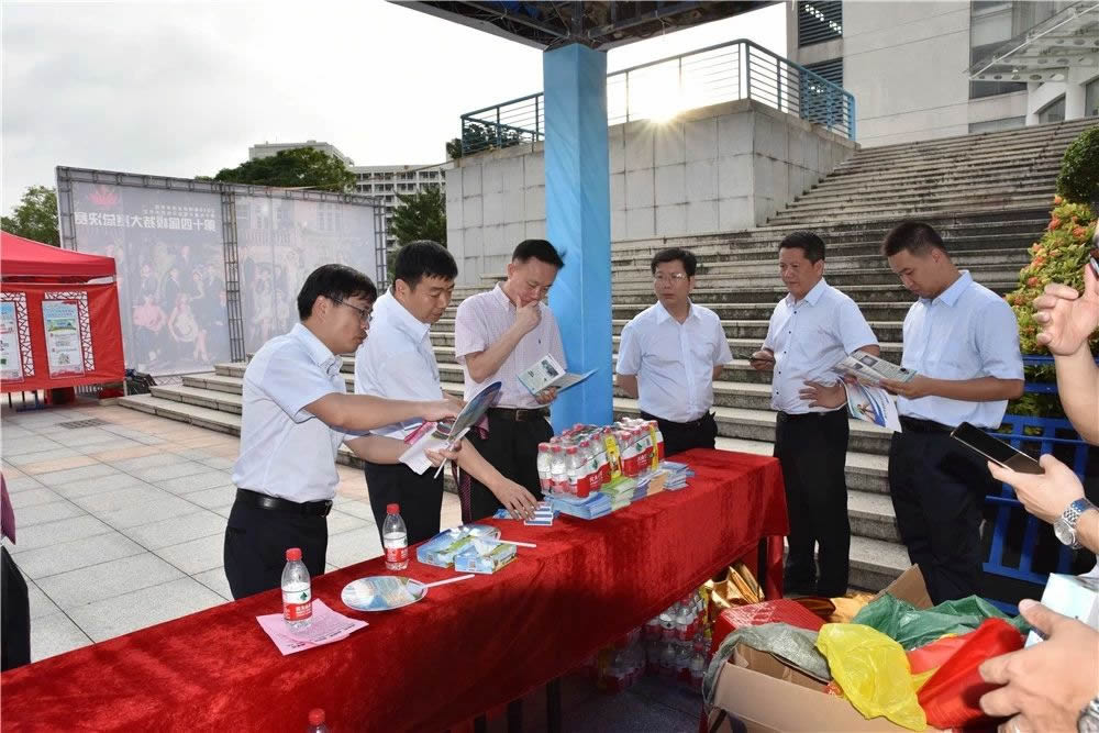 区安委会副主任、区应急管理局局长李发彬(左起第二)到宣传摊位前查看当天活动准备情况