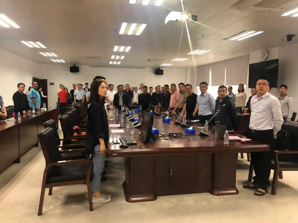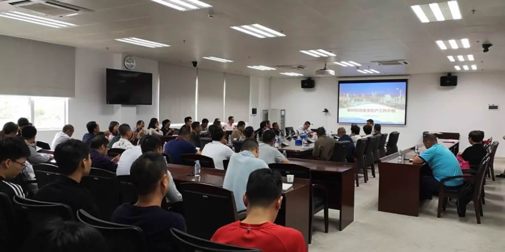 在庄严的国歌奏唱完毕后,由顺德安协秘书长潘有强主持召开了应急管理交流会,惠州大亚湾区安全生产协会严湘秘书长对顺德企业代表来惠州参观学习表示热烈的欢迎,协会黄景烽会长对大亚湾安全生产协会及中海油惠州石化就本次交流活动提供的帮助与支持表示衷心的感谢。随后,中海油惠州石化安全部方联殷经理从惠州石化公司的概况、安全生产管理两个部分对惠州石化安全生产工作展开了介绍,并为会员企业代表传授了中海油的作业安全管理理念和树立安全红线文化意识。