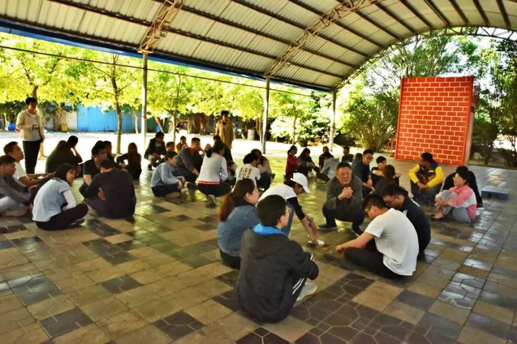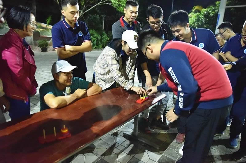 用餐完毕后,团队进行“汉诺塔”游戏和各自小组表演
