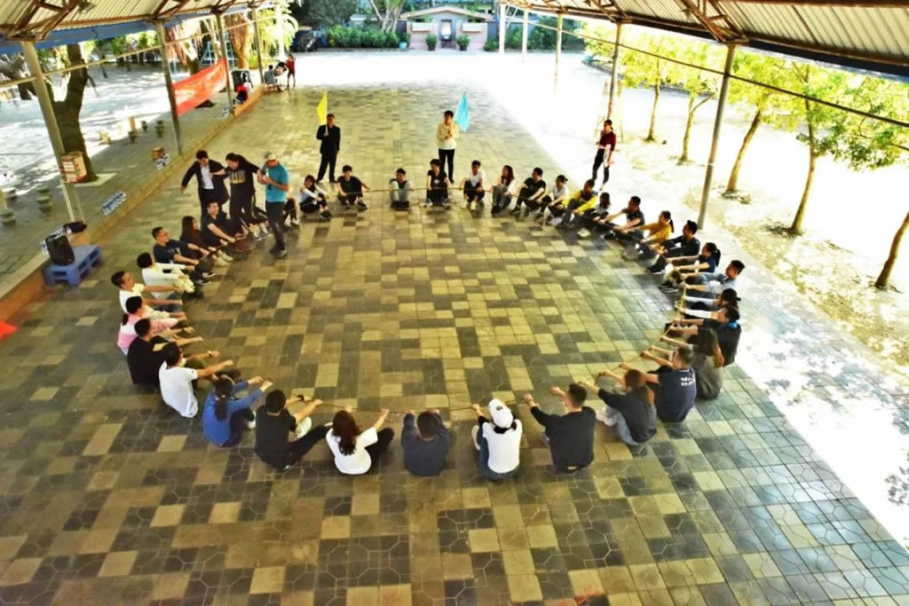 到达惠州基地已是烈日当空,小伙伴们的热情反增不减。在教练的安排下,来自不同部门的小伙伴随机组成了四支队伍,大家通过破冰游戏,推选出组长,在规定时间完成队名、口号、造型展示等任务融入团队。