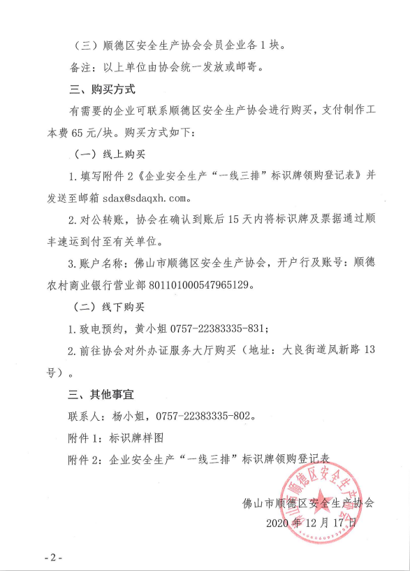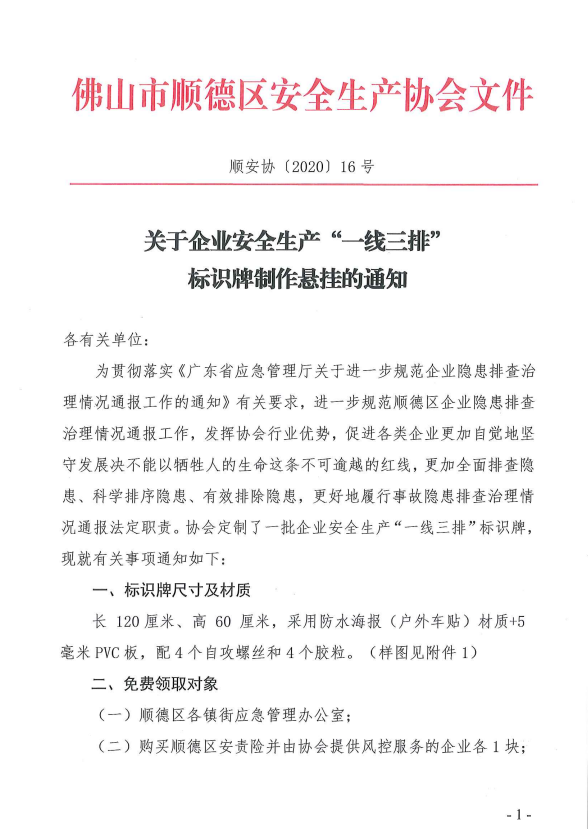顺安协[2020]16关于企业安全生产“一线三排”标识牌制作悬挂的通知