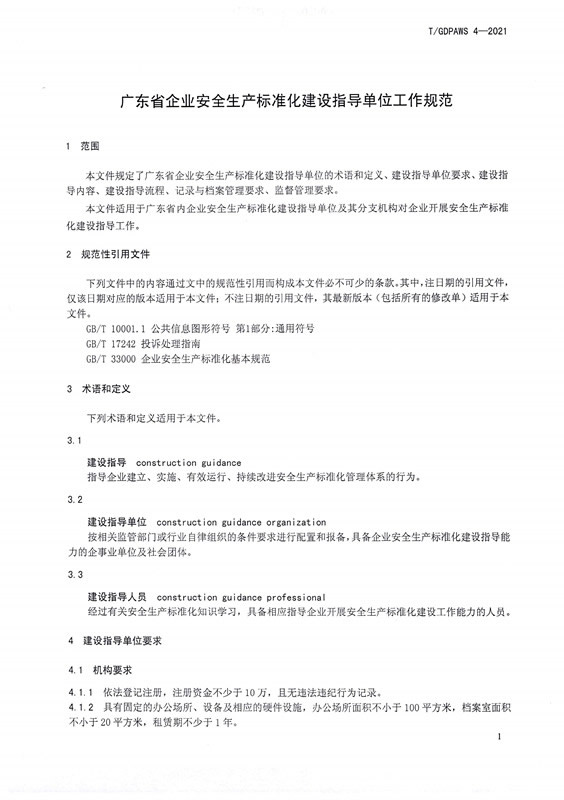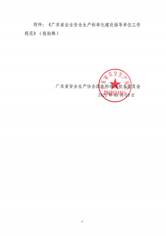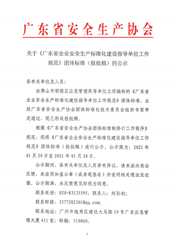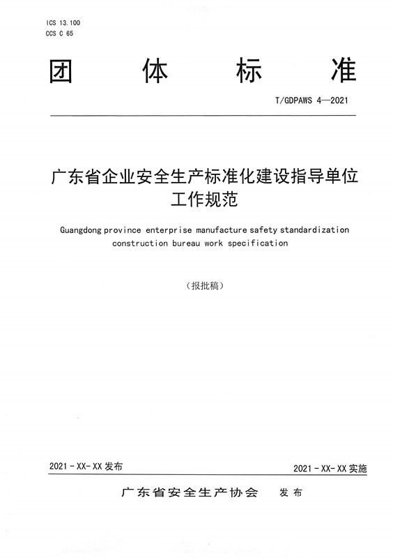 关于《广东省企业安全生产标准化建设指导单位工作规范》团体标准(报批稿)的公示