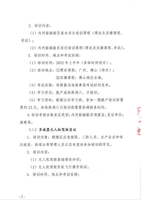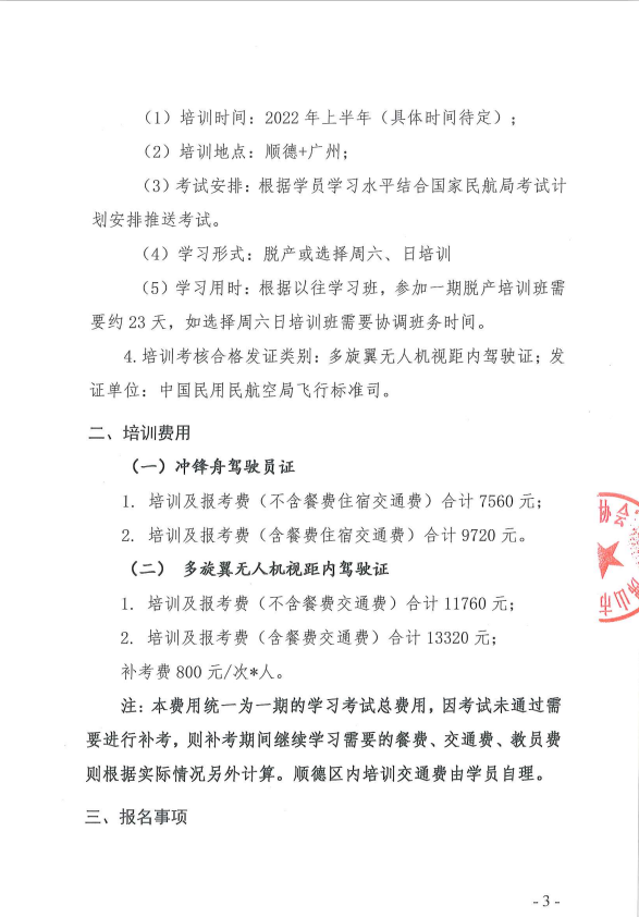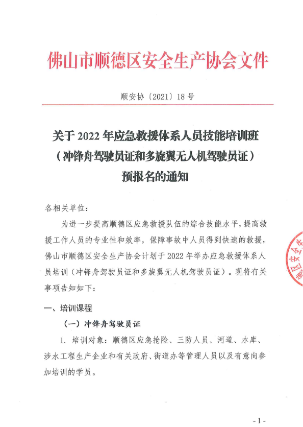 顺安协[2021]18号关于2022年上半年应急救援体系人员技能培训班(冲锋舟驾驶员证和多旋翼无人机驾驶员证)预报名的通知