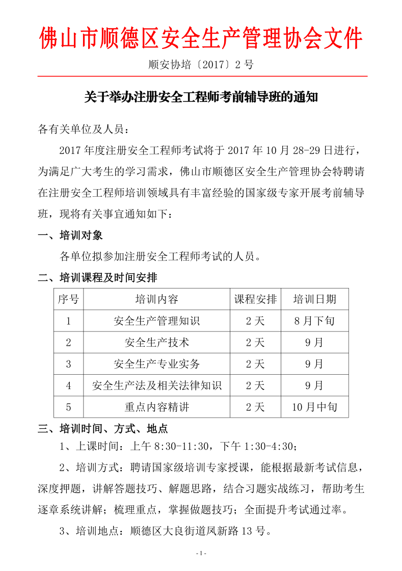 关于举办注册安全工程师考前辅导班的通知